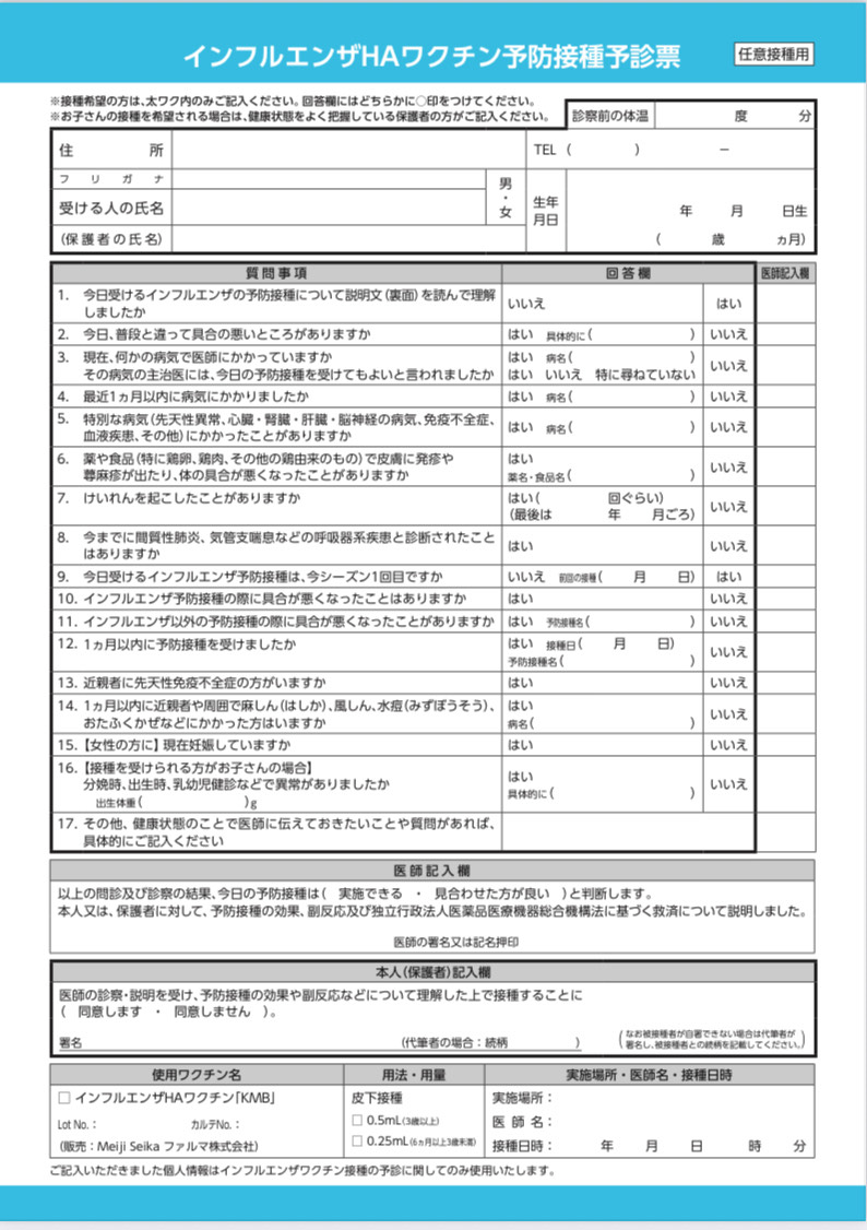 インフルエンザ予防接種の予診票がこちらからダウンロードできます。